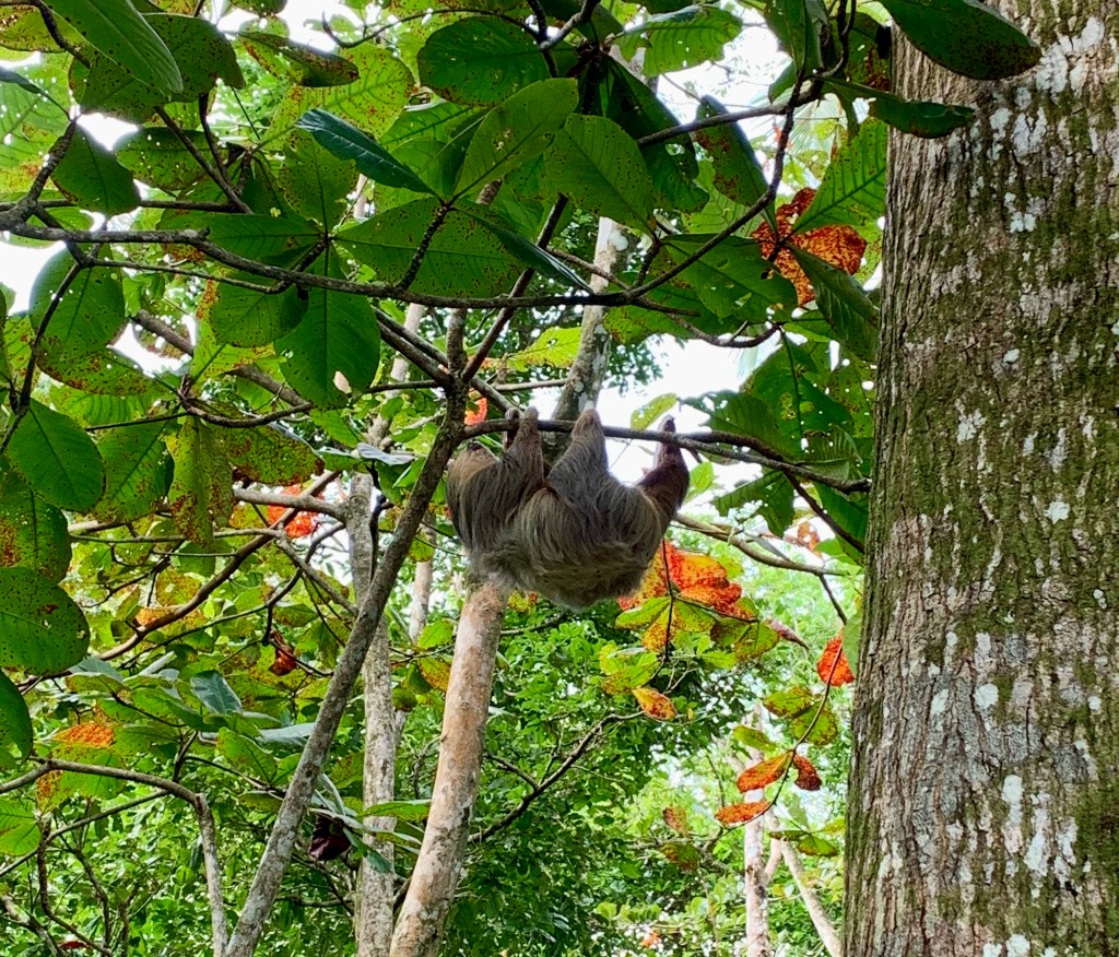 Mais la petite ville est surtout située juste à coté de l’entrée du Parc National de Cahuita, qui grouille d’animaux en tout genre. On y croise des paresseux, des singes, des iguanes, des chauves souris, et pleins de papillons, insectes et oiseaux. Pour ce parc là, nous n’avons pas eu besoin de guide, tellement les animaux sont visibles. On en a notamment retrouvés plusieurs dans le jardin de notre auberge !